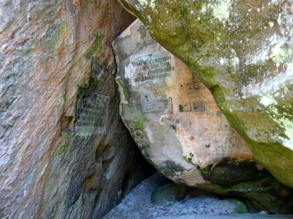 Přímo v srdci tohoto přírodního chrámu, pod klenbou větví a hvězd, najdete mohutný pískovcový blok. Pokud k němu přistoupíte blíž a odhrnete mech, uvidíte do něj vytesaný kalich a letopočet 1634. Není to výtvor moderních umělců ani romantiků 19. století. Je to autentický, drsný otisk čisté víry. Vytesal ho zřejmě tajný bratrský kazatel Václav Sadovský ze Sloupna. Toto byl jejich oltář.