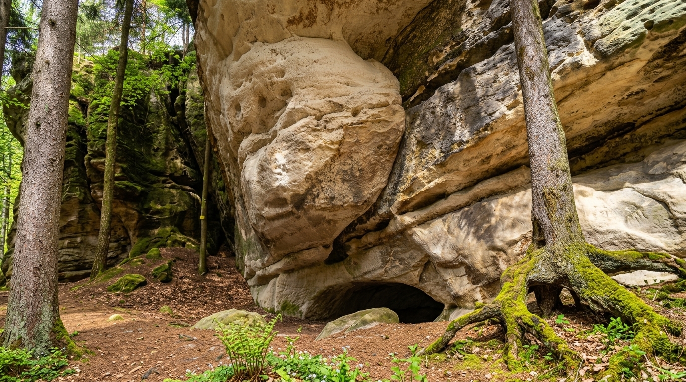 Sedni si tam na chvíli. Zavři oči. To, co uslyšíš, není jen šumění nedalekého Václavského potoka. Je to ozvěna desítek generací, které tu seděly před tebou. Archeologové zde našli tisíce kamenných nástrojů. Ti lidé sem nepřišli náhodou. Hledali ochranu, ale hledali i spojení se zemí. Pod tímto převisem se čas ohýbá.