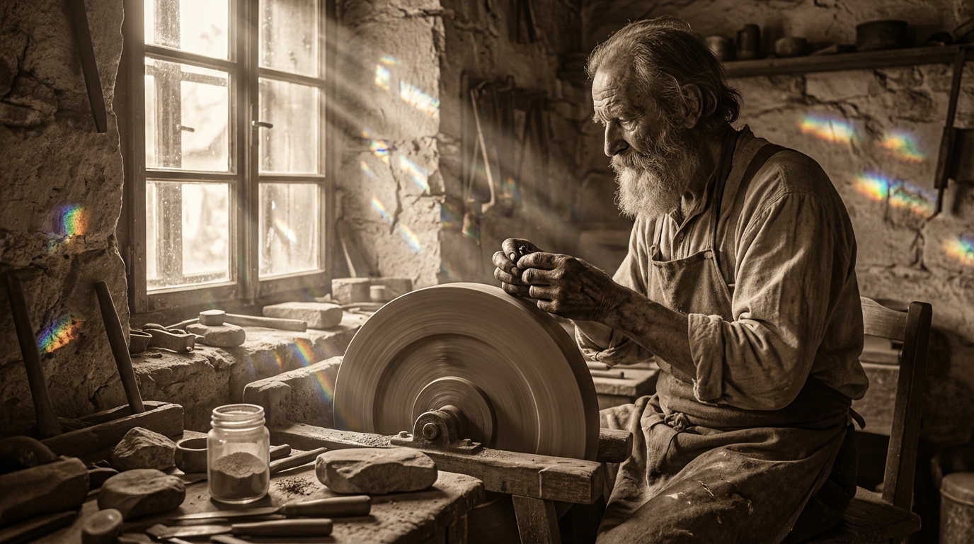 „Vidíš to, Vojto?“ oslovil svého učně, který právě zametal podlahu plnou skleněných střepů. „Lidé si myslí, že v Turnově jen brousíme kameny. Ale my do nich uzavíráme světlo, které nám Bůh dal. Kámen je jako duše – dokud ho neopracuješ bolestí a brusem, neuvidíš jeho skutečnou záři.“ . Vojta se zastavil a mlčky pozoroval mistra. Věděl, že pro Hanuše je broušení drahokamu modlitbou. Včera, na Velký pátek, dílna mlčela. Hanuš věřil, že kámen by v den Kristova umučení pod brusným kotoučem plakal, a tak se ani nedotkl stroje.